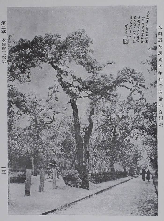圖6、朱啟鈐會長攝于民國四年(1915)仲春,畫面有紫江(蠖公)自題記