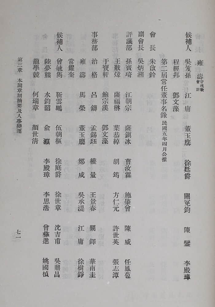 圖11、中央公園第二屆常任董事會名錄[民國五年(1916)四月公推]