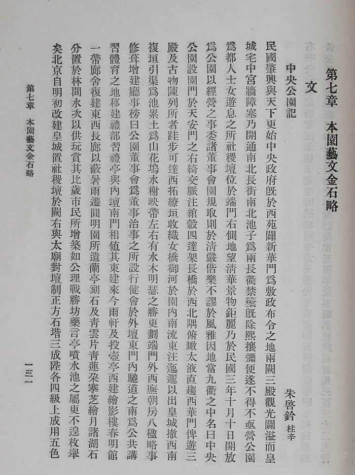 圖32-33、朱啟鈐會長民國十四年(1925)十月十日撰《中央公園記》
