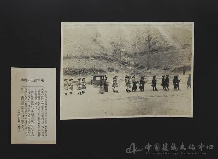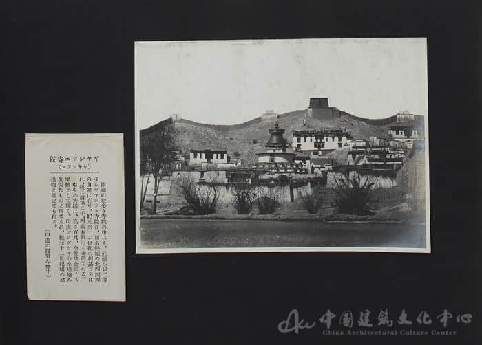 中國建筑文化中心圖書館收藏了由日本亞細亞寫真大觀社編輯,昭和二年(1927)版《亞細亞大觀》第四輯第一回至第三回“秘密國 西藏第四回至第六回”,共有西藏民俗風光、人物、宗教等方面的照片二十余幀(150mm×110mm)。此專輯照片裝幀形式統一, 尺寸大小基本一致;每幀照片配一張印有日文注解說明的標簽, 標簽內容為照片標題、拍攝地點、情景簡介等;照片和文字標簽均貼在21×30 cm黑色硬紙板相紙上, 并在每期上都附有“嚴禁復制”的字樣。圖文清晰。